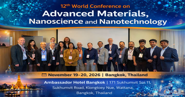 We are pleased to invite you to the 12th World Conference on Advanced Materials, Nanoscience and Nanotechnology, will be held on November 19–20, 2026, in Bangkok, Thailand. Launched in 2022, the conference has developed into a well-recognized annual forum hosted in Bangkok each November, bringing together researchers, scientists, engineers, and industry innovators from around the world. As part of a broader international conference series, it provides a dedicated platform for advancing research and fostering collaboration in materials science and nanoscale technologies. The conference highlights next-generation materials, nanoscale innovations, and advanced fabrication techniques driving breakthroughs across energy, electronics, healthcare, and sustainable technologies.