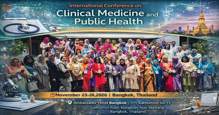 The International Conference on Clinical Medicine and Public Health will be held on November 23–24, 2026, in Bangkok, Thailand. This global healthcare conference brings together clinicians, medical researchers, public health experts, healthcare practitioners, academics, and policymakers committed to advancing clinical excellence and strengthening population health worldwide. The event serves as a collaborative platform to share high-impact research, exchange professional insights, and explore innovative strategies that improve healthcare delivery and public health outcomes. The conference highlights advancements in clinical practice, public health systems, and digital health innovations aimed at improving patient outcomes and strengthening global healthcare systems.