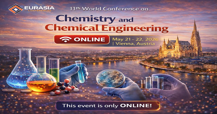 The 11th World Conference on Chemistry and Chemical Engineering (WCCCE–Vienna-2026), organized by Eurasia Conferences, will be held on May 21–22, 2026, as a fully online international conference hosted from Vienna, Austria. As part of a well-established global conference series, WCCCE continues to bring together a distinguished community of scientists, researchers, engineers, and industry professionals committed to advancing knowledge and innovation in the chemical sciences. In light of the current situation in the Middle East and West Asia, the conference will be conducted virtually to ensure the safety, accessibility, and convenience of all participants worldwide.
